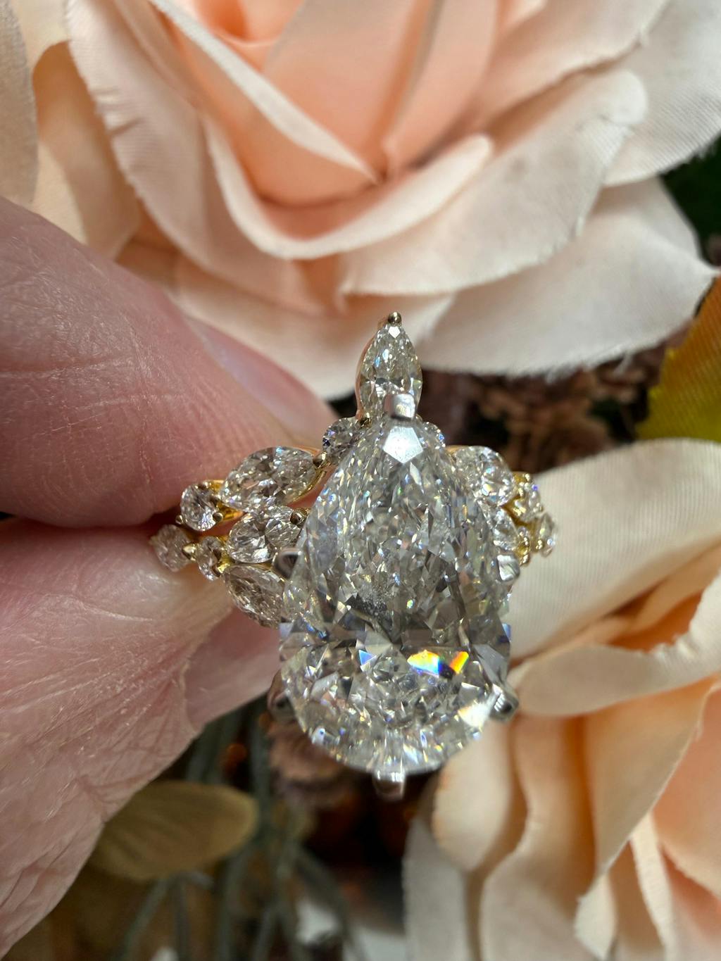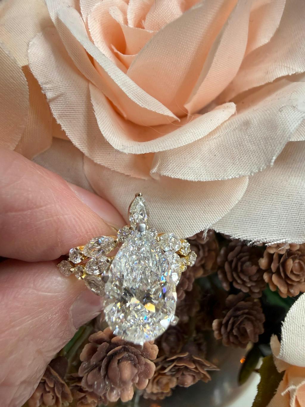 I am soooooo in love with my new 3.00 carat pear solitaire engagement ring!!! It’s absolutely stunning! It sparkles and shines from every angle. I enjoyed being updated in the process of making my ring. It came in a beautiful box with all the certifications.