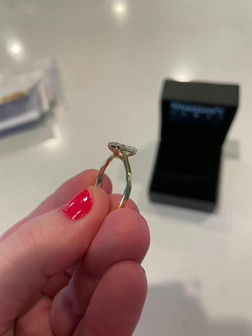 I am so happy with my purchase! When I first placed my order, I didn’t realize my engagement ring would be made from scratch or how long that process would take. It was a bit of a rushed purchase, and in my hurry, I forgot to include my ring size. I called immediately (at night, EST) and was pleasantly surprised to reach someone right away. They noted my ring size and reassured me not to worry.
