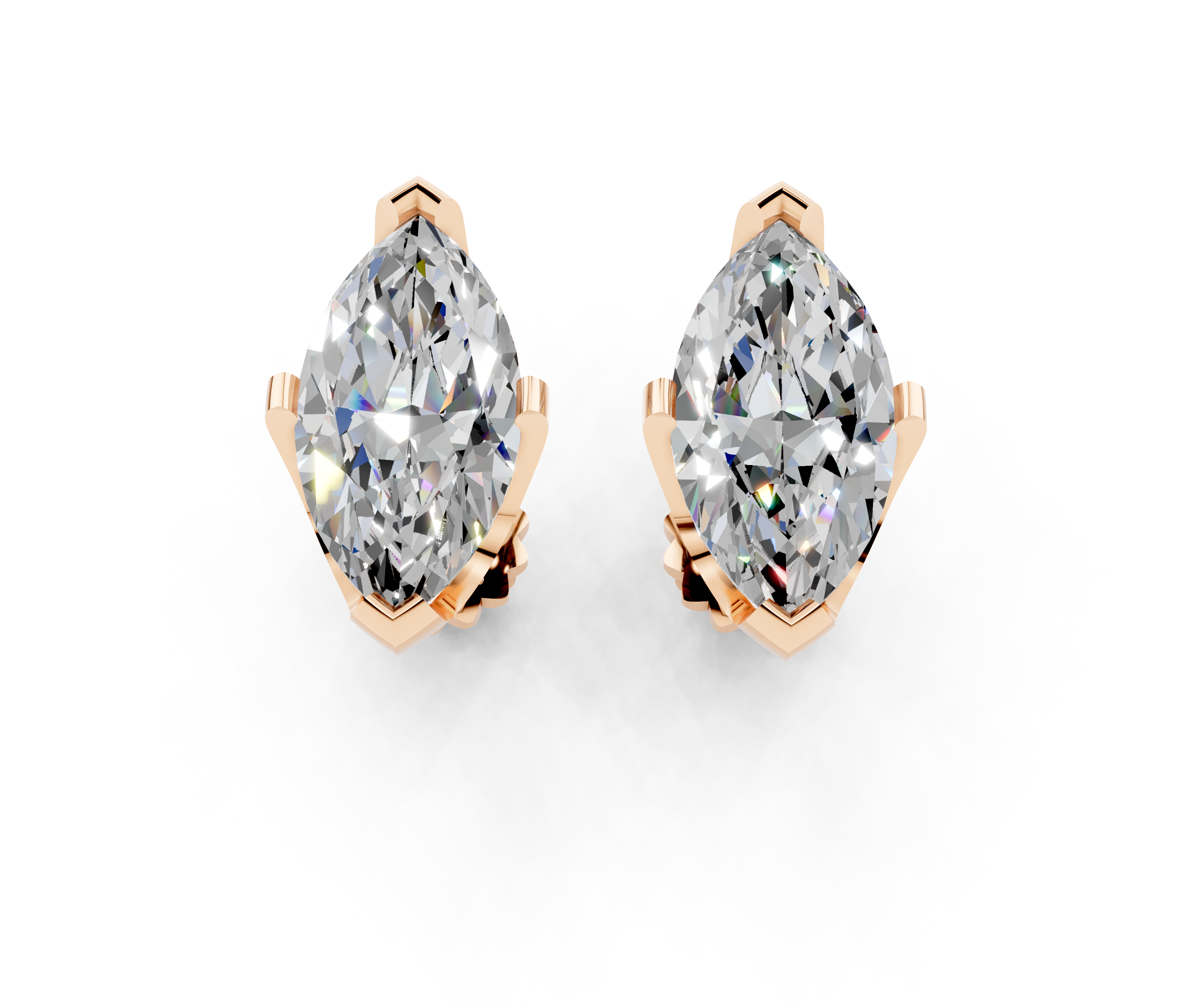 These exquisite earrings feature marquise brilliant diamonds, each securely held in a classic four-prong basket setting. The stones are expertly cut to maximize their sparkle and brilliance, making them a timeless addition to any jewelry collection. Set in lustrous rose gold, these stud earrings offer a perfect blend of elegance and sophistication, ideal for both everyday wear and special occasions. The secure push-back or screw-back closure ensures comfort and ease of wear, making these earrings a must-have for any jewelry enthusiast.
