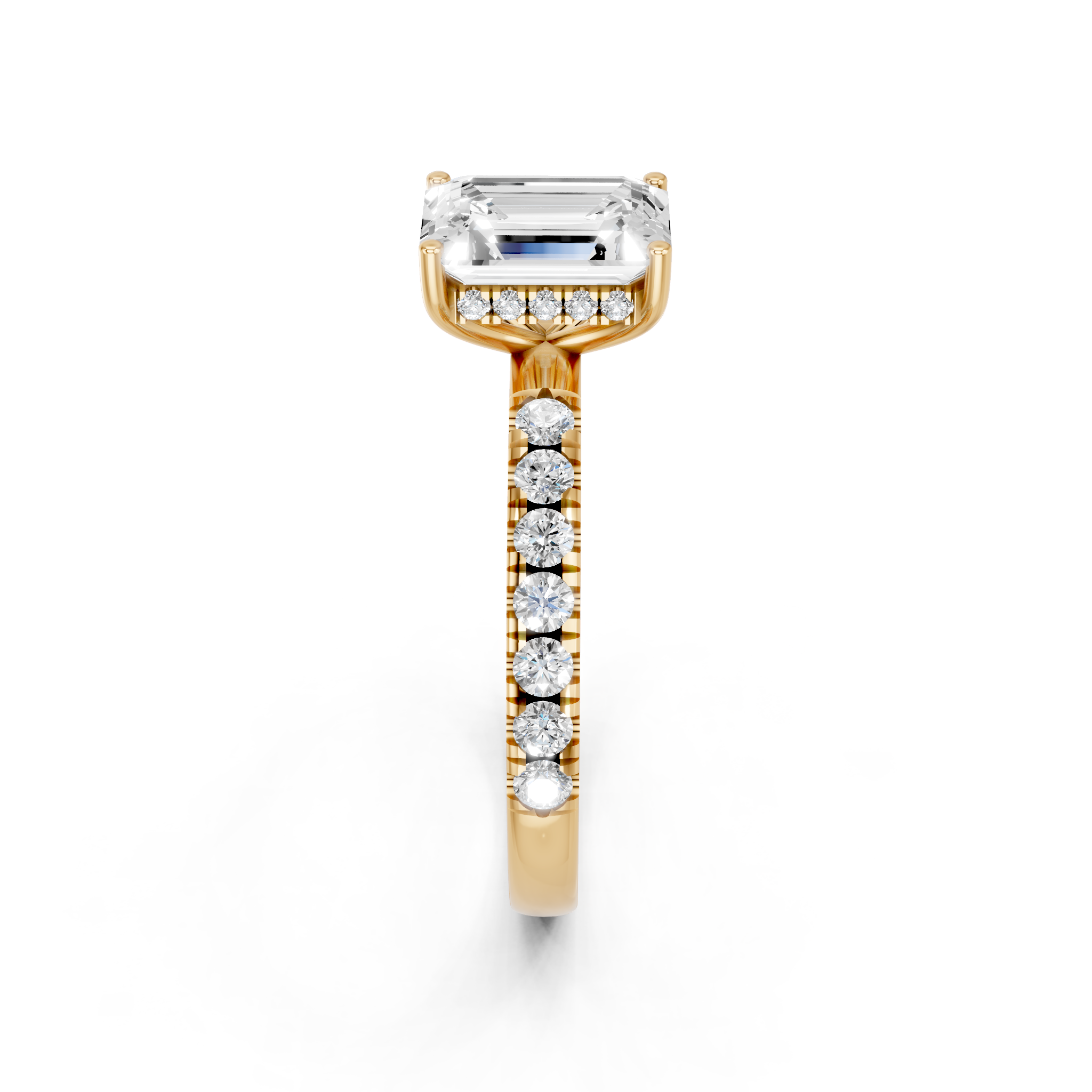 10K Yellow Gold 1.03 Carat F VS1 Emerald Cut Diamond Pave Band Solitaire Ring with Four-Prong Setting