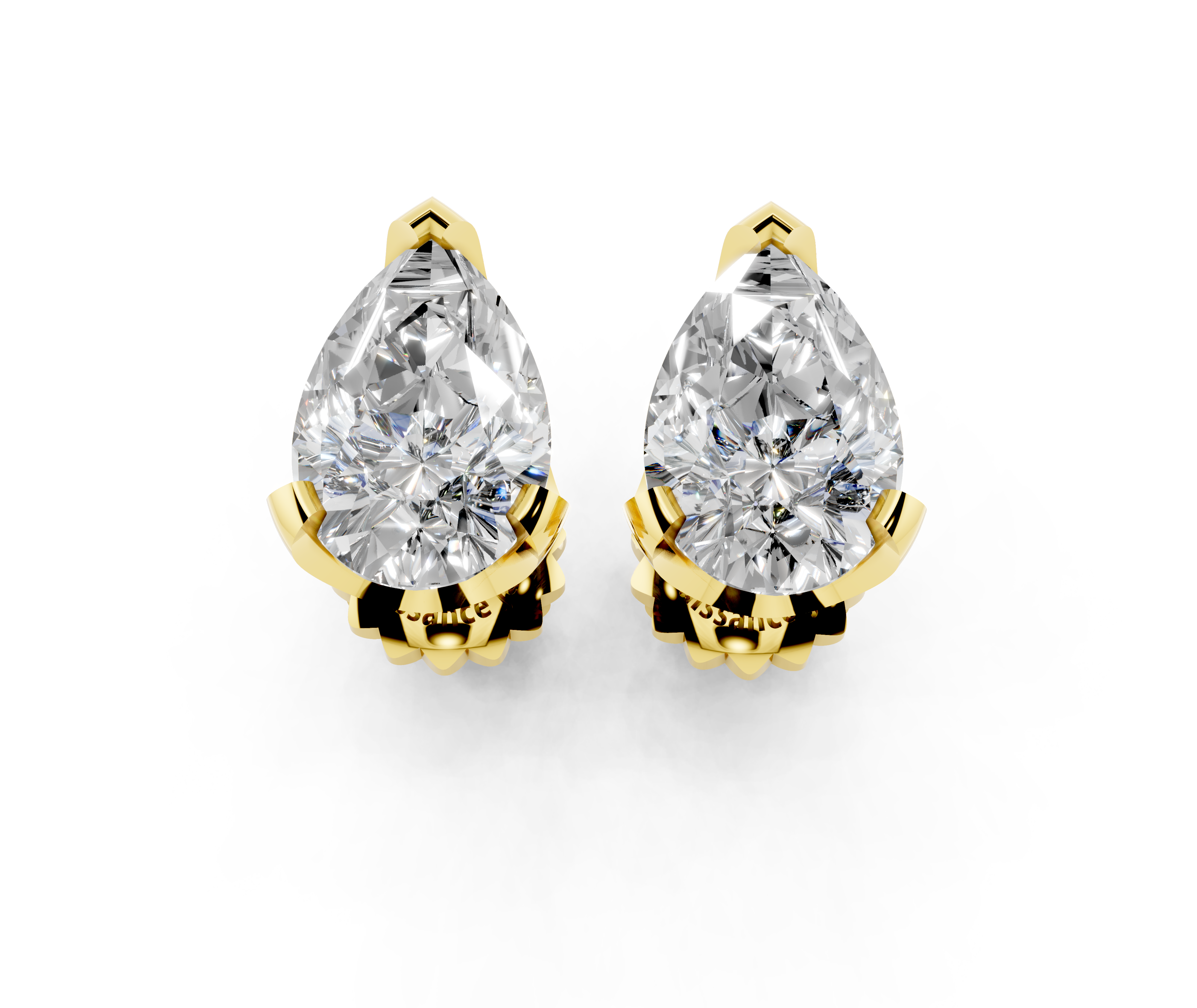 These exquisite earrings feature pear brilliant diamonds, each securely held in a classic four-prong basket setting. The stones are expertly cut to maximize their sparkle and brilliance, making them a timeless addition to any jewelry collection. Set in lustrous yellow gold, these stud earrings offer a perfect blend of elegance and sophistication, ideal for both everyday wear and special occasions. The secure push-back or screw-back closure ensures comfort and ease of wear, making these earrings a must-have for any jewelry enthusiast.
