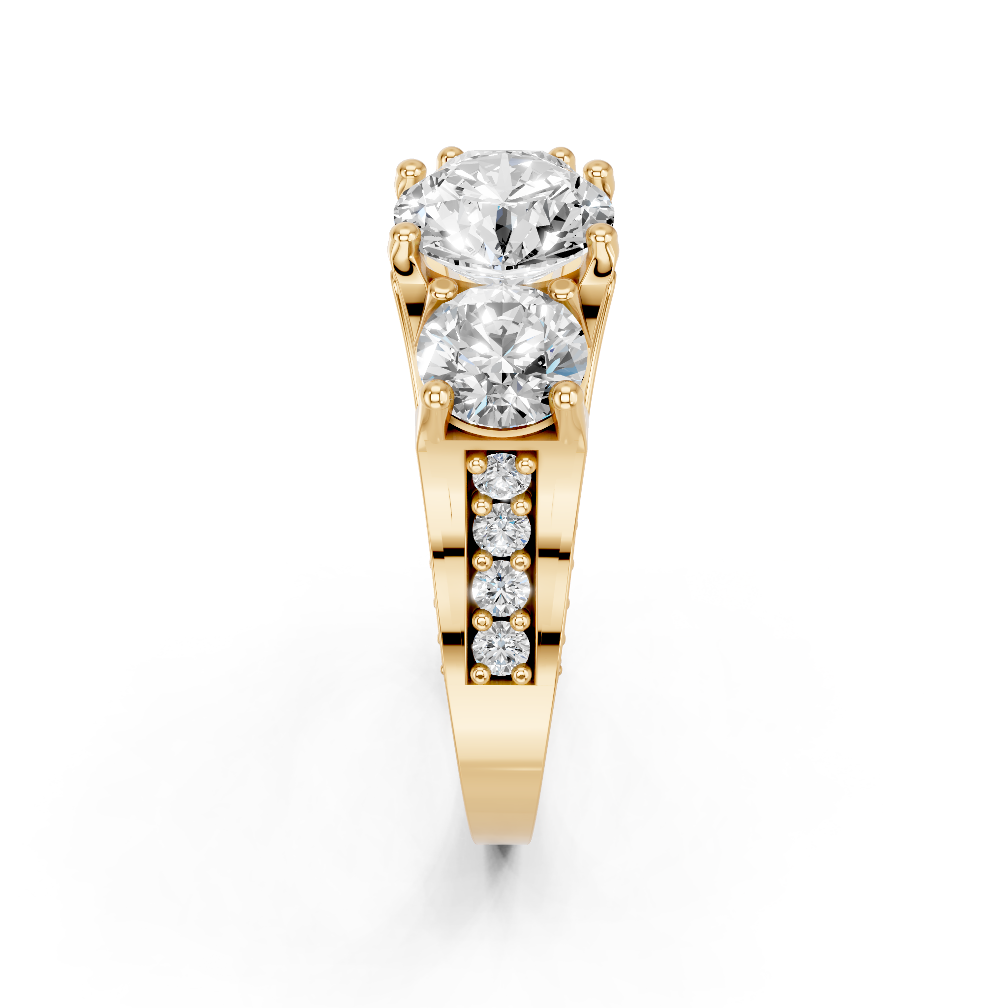 18K Yellow Gold Three-Stone 2.06 Carat D VS1 Round Cut Diamond Ring with Channel-Set Band and Four-Prong Setting