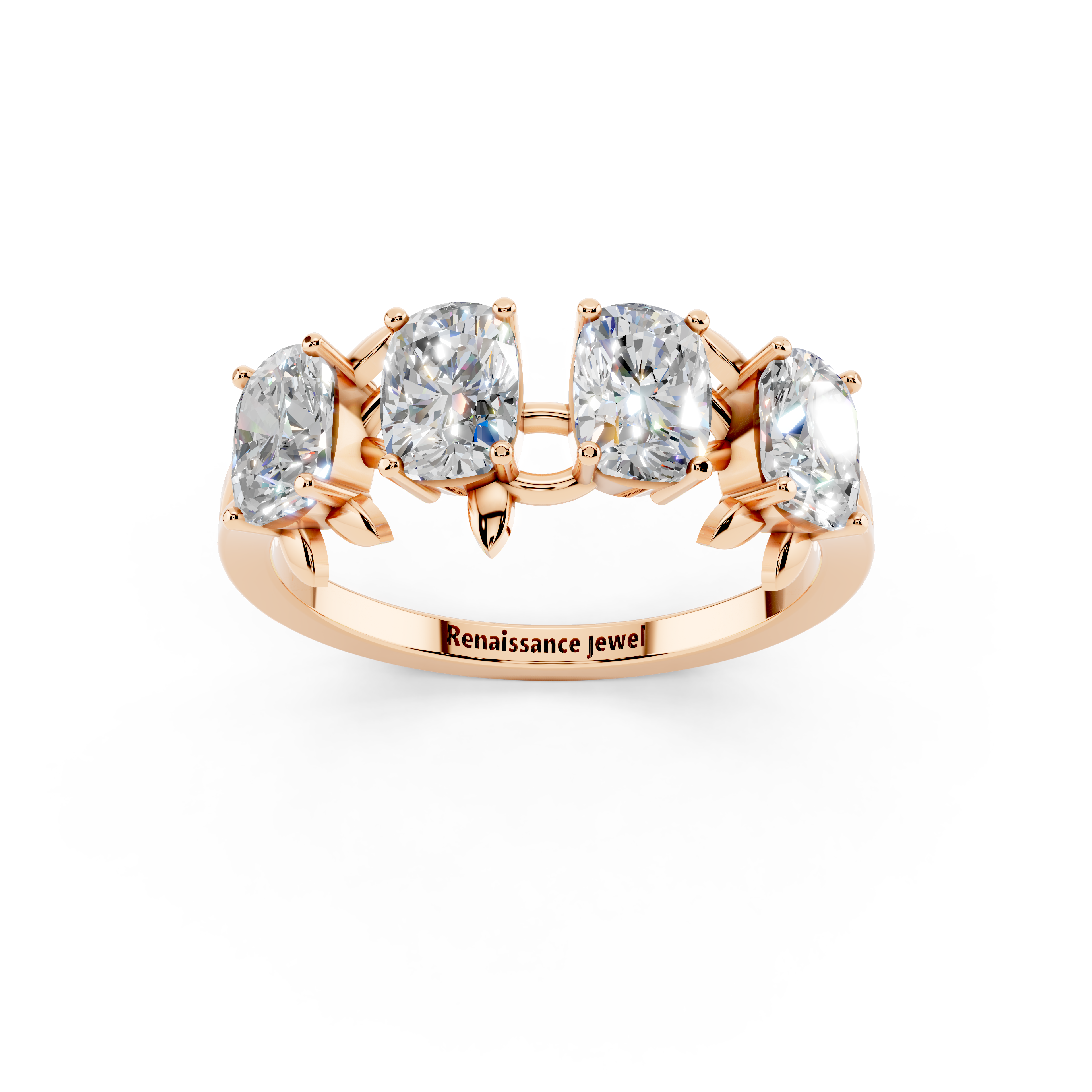 Rose gold Elongated Cushion Diamond 4-Stone Band with Nature-Inspired Prong Setting