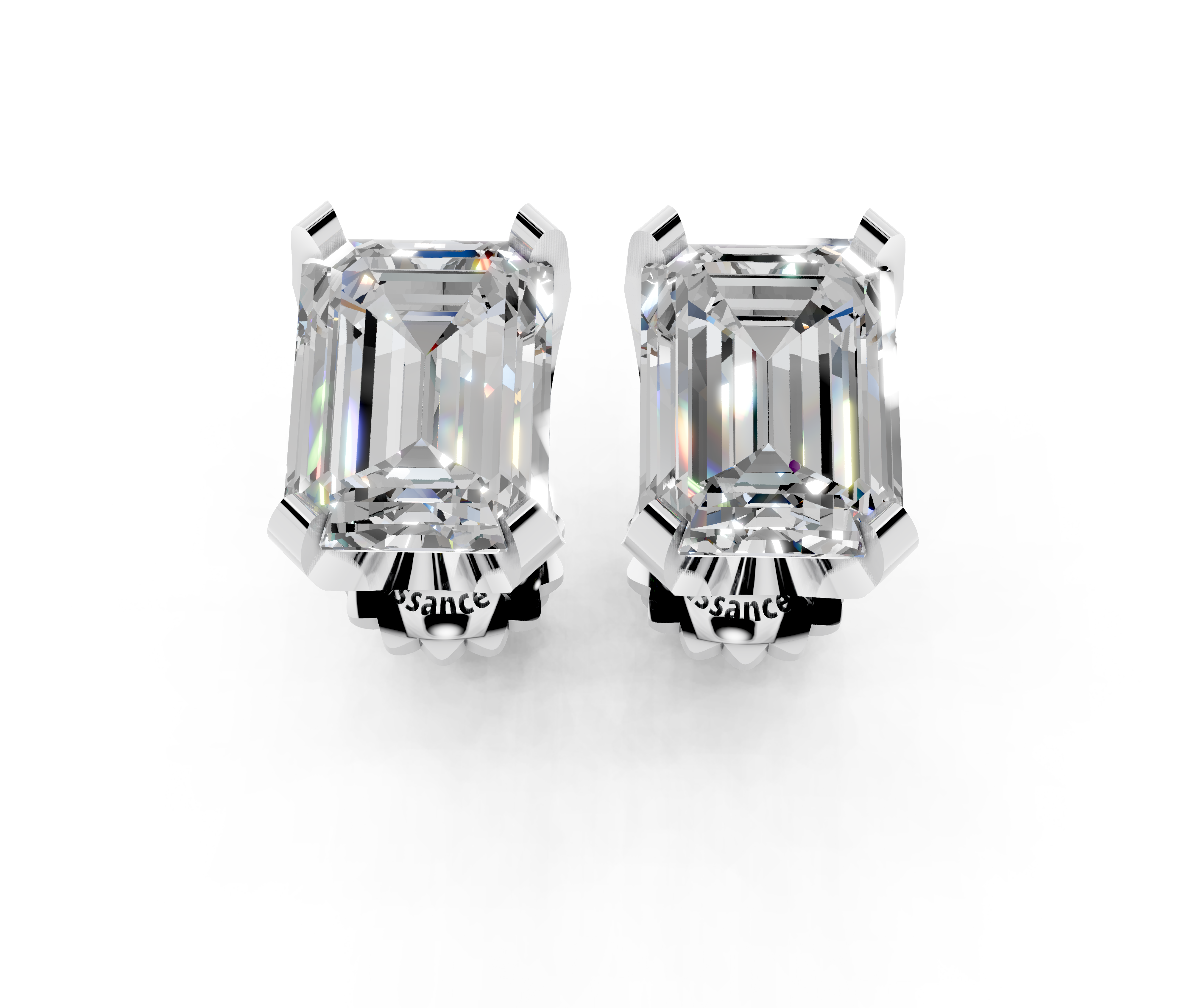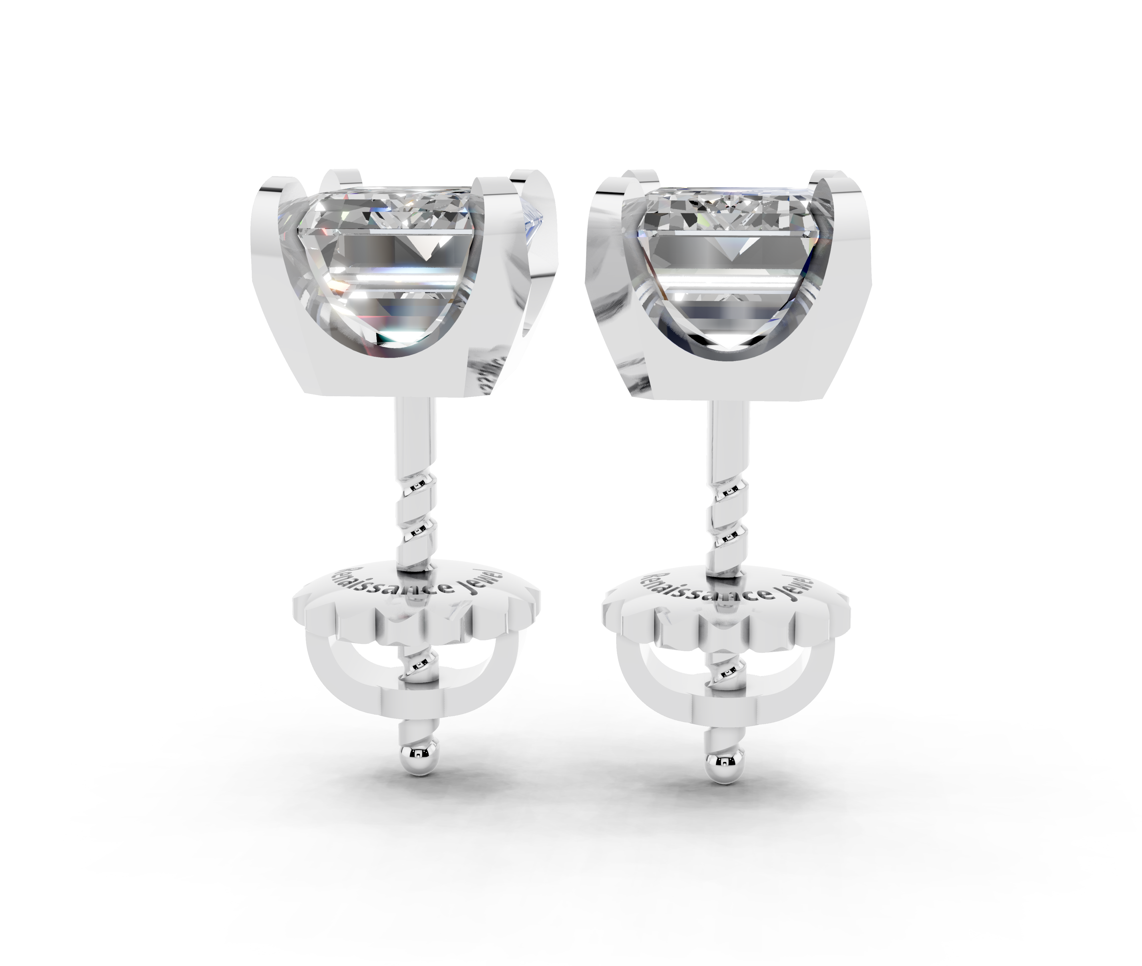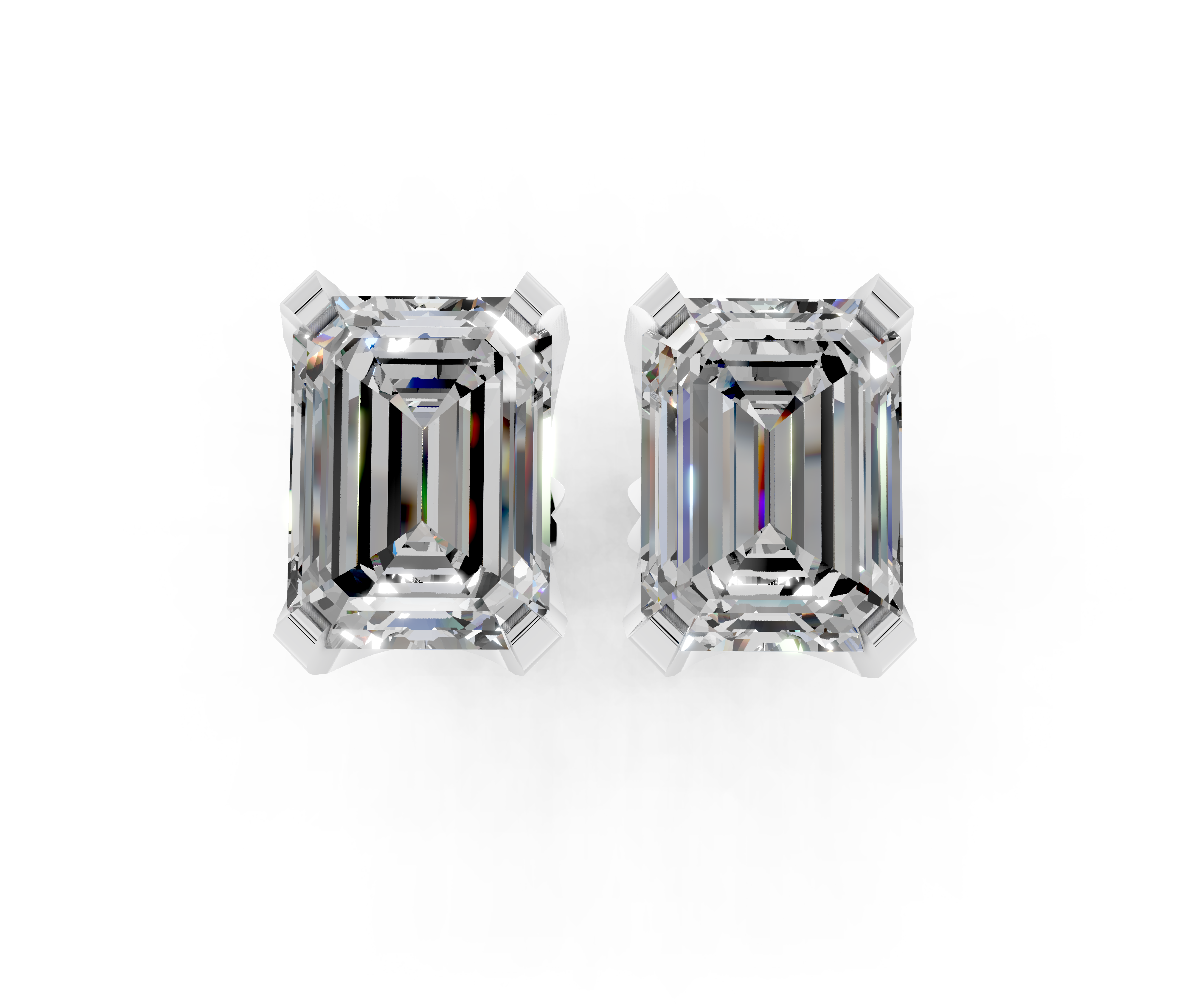 These exquisite earrings feature emerald brilliant diamonds, each securely held in a classic four-prong basket setting. The stones are expertly cut to maximize their sparkle and brilliance, making them a timeless addition to any jewelry collection. Set in lustrous platinum, these stud earrings offer a perfect blend of elegance and sophistication, ideal for both everyday wear and special occasions. The secure push-back or screw-back closure ensures comfort and ease of wear, making these earrings a must-have for any jewelry enthusiast.