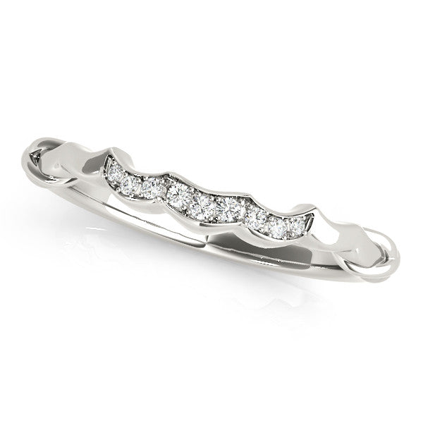 Platinum Scalloped Diamond Curved Band with Round Brilliant Stones and Shared Prong Setting