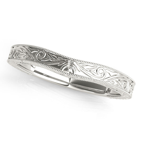 Platinum Radiant Solitaire Milgrain Engraved Band with Four-Prong Setting