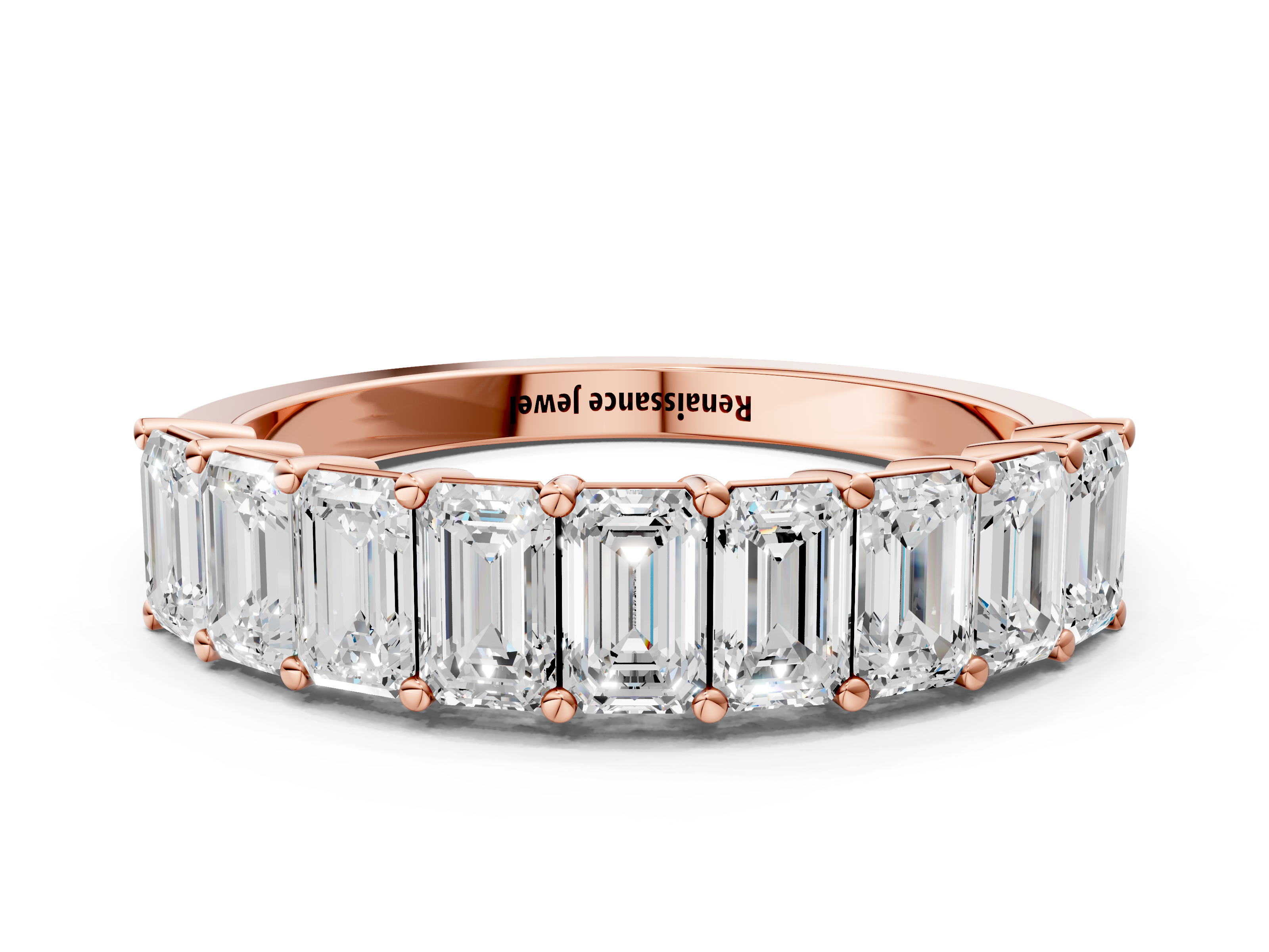 Rose gold Emerald Cut Diamond Half Eternity Band with Prong Setting