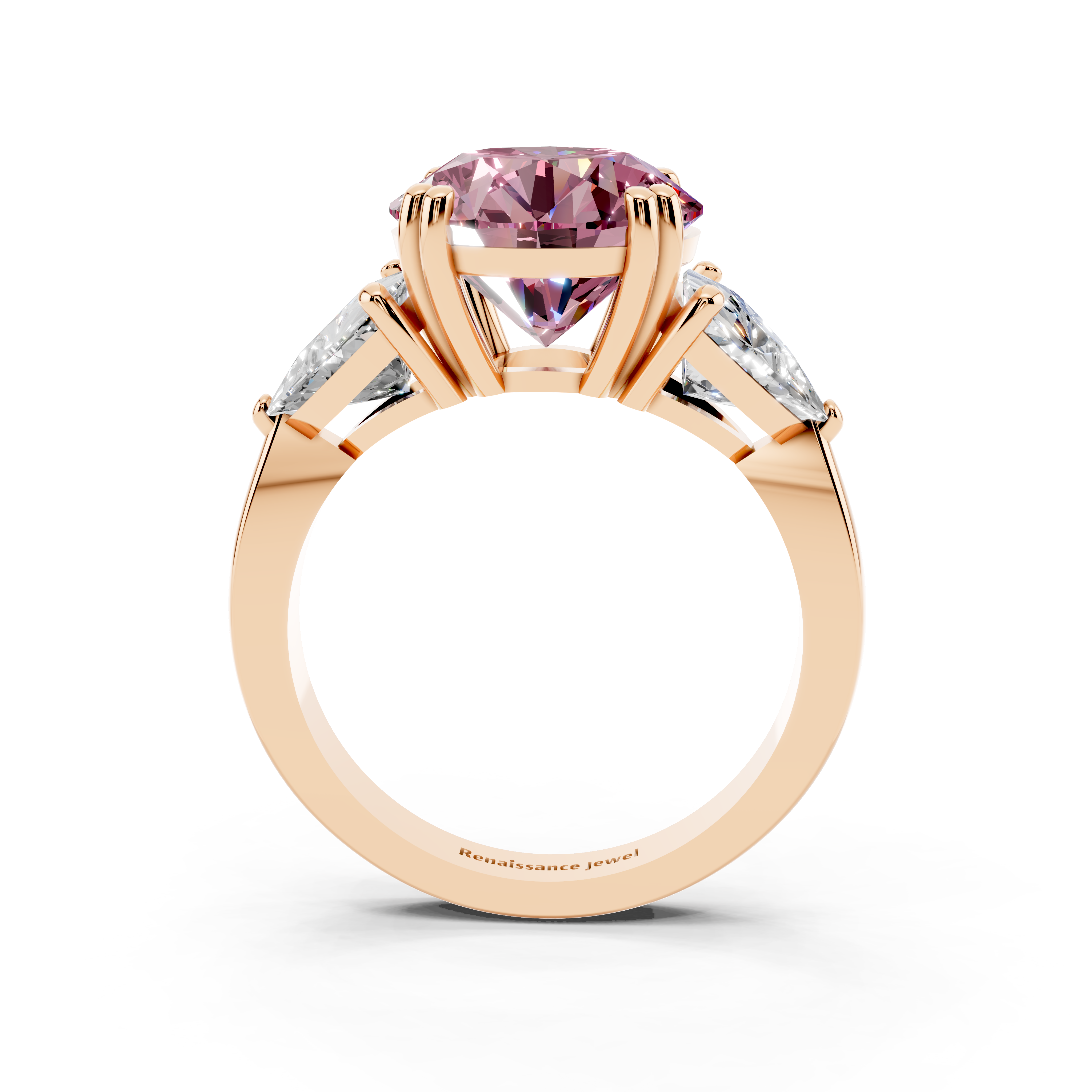 Rose gold Fancy Pink Round cut Brilliant and Trilliant Diamond Three-Stone Ring