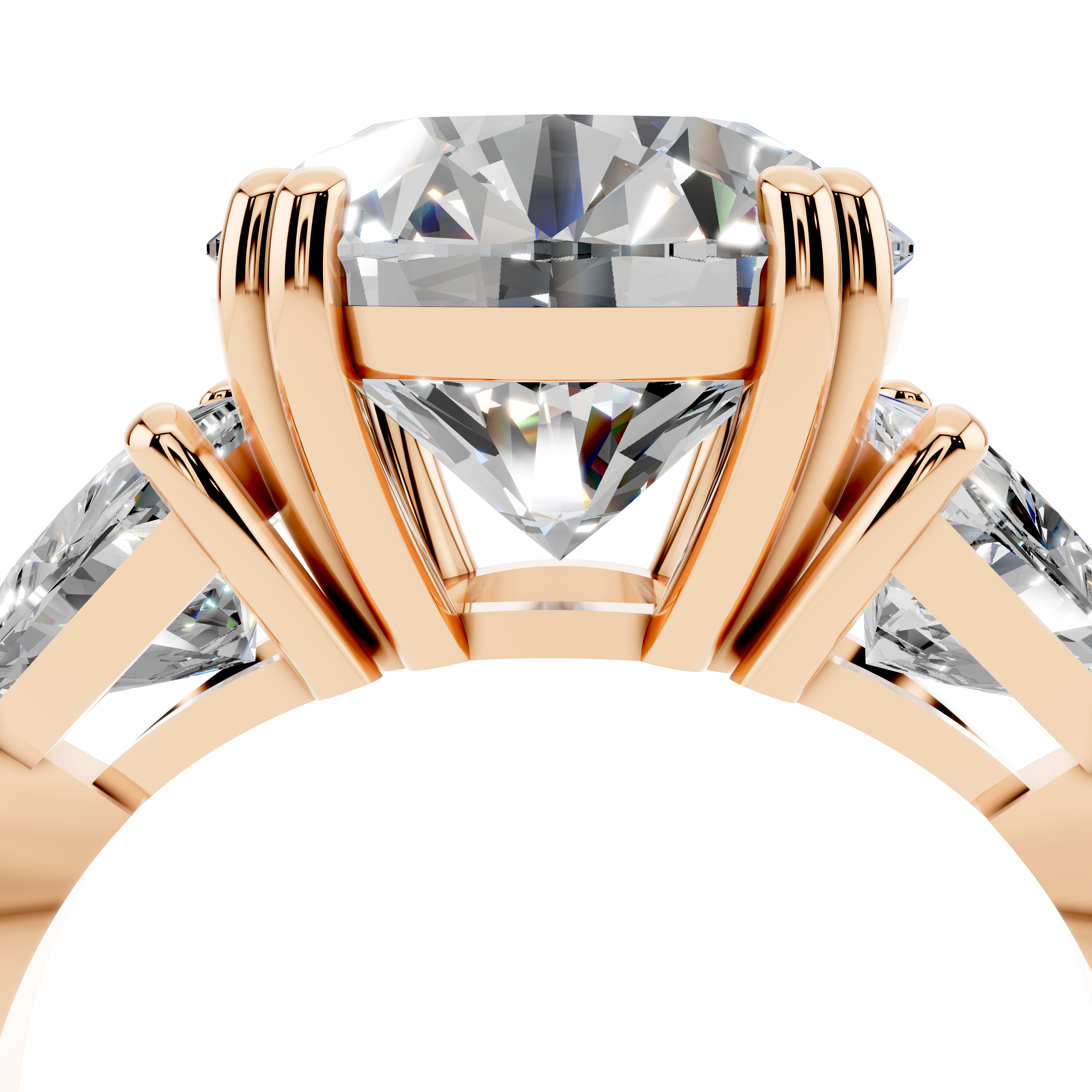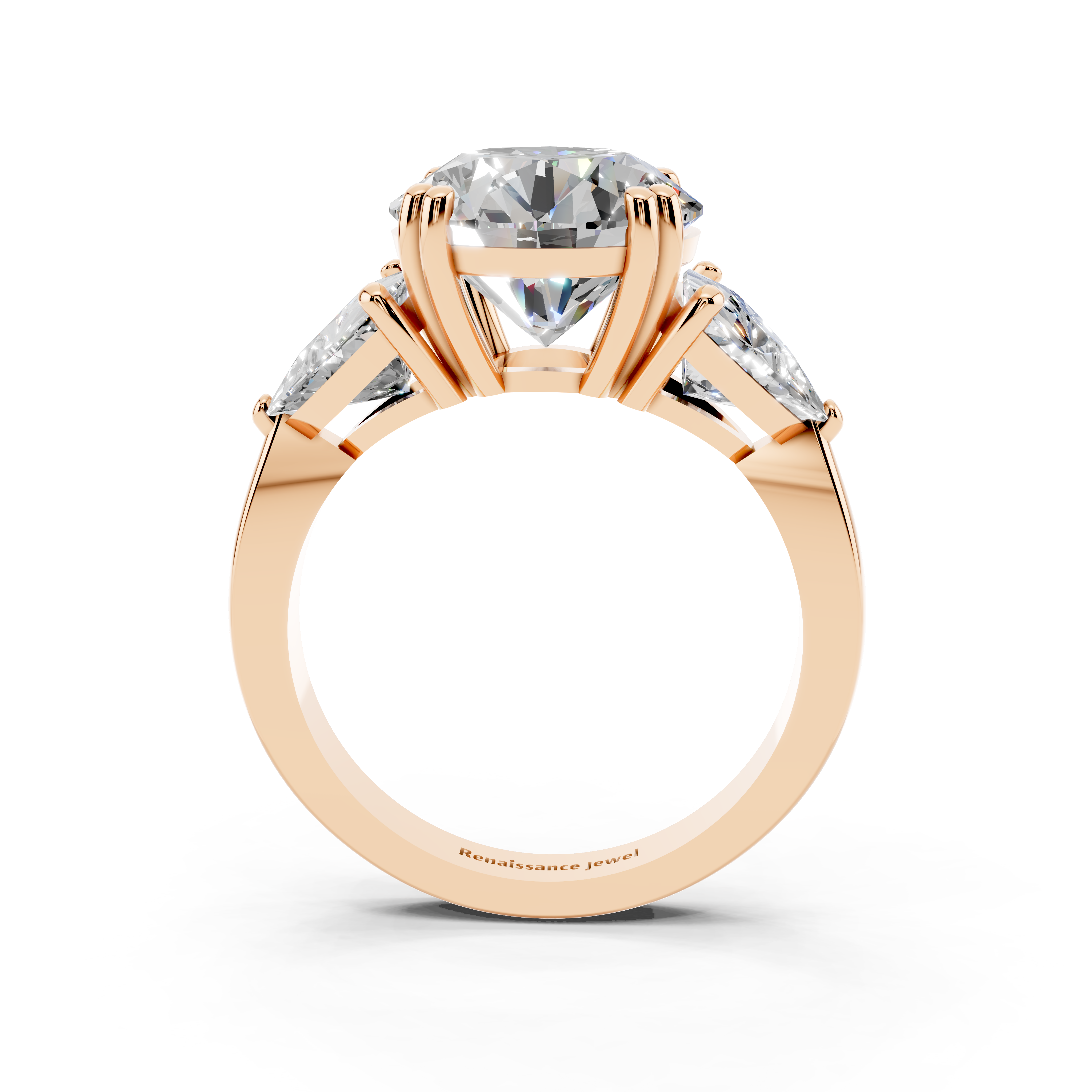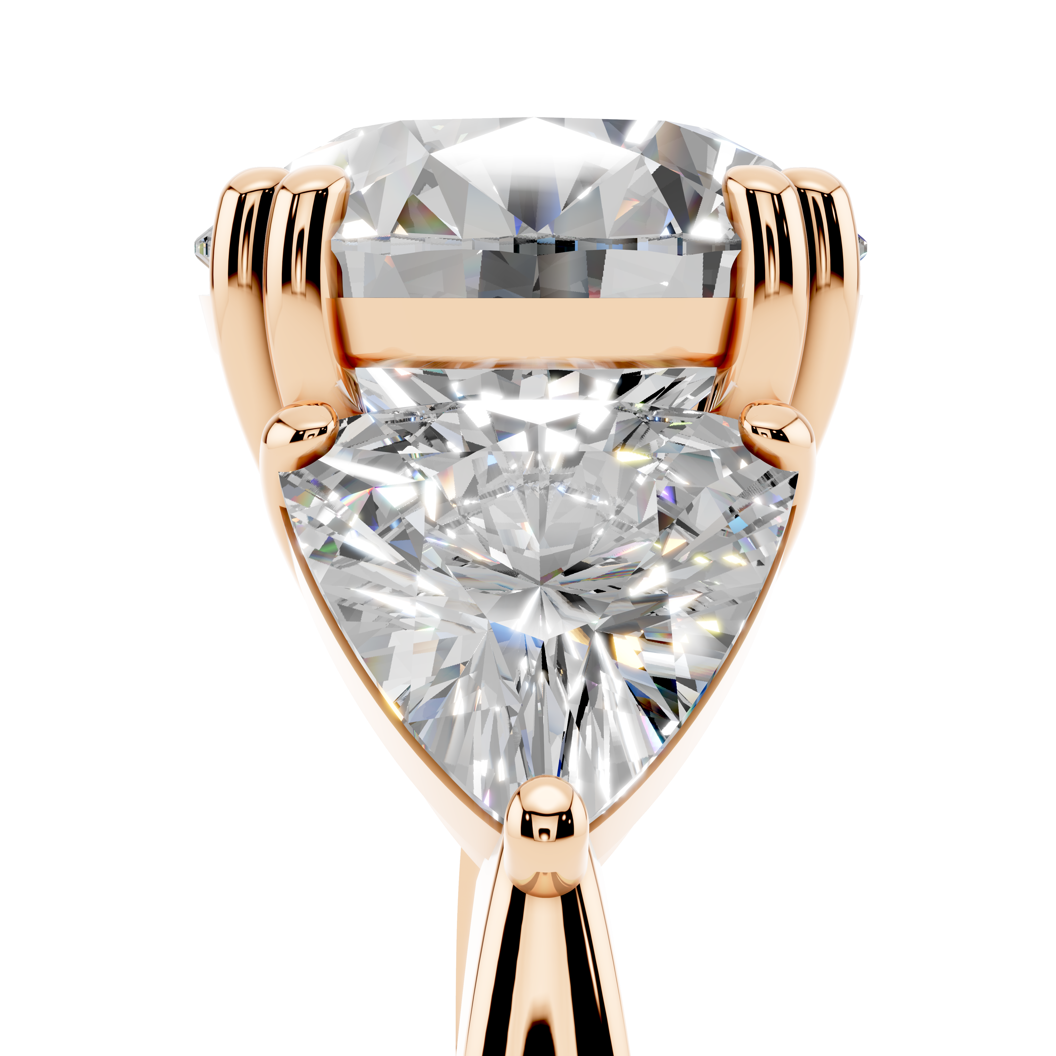 A striking balance of brilliance and elegance, this Rose gold Round Brilliant and Trilliant Diamond Three-Stone Ring is designed to symbolize past, present, and future. The centerpiece features a dazzling round brilliant diamond, celebrated for its unmatched sparkle and fire. Flanking the center stone are two perfectly matched trilliant-cut diamonds, adding a bold, contemporary touch while enhancing the round diamond’s brilliance. Expertly crafted in solid Rose gold, this three-stone ring combines timeless sophistication with modern artistry. The secure prong setting ensures maximum light reflection, highlighting the brilliance of each stone from every angle. Perfect as an engagement ring, anniversary gift, or statement of love, this design is both meaningful and luxurious, destined to be cherished for a lifetime. Details: Metal: Solid Rose gold Center Stone: Round Brilliant Diamond Side Stones: Trilliant-Cut Diamonds Setting: Prong Set Style: Three-Stone Ring Symbolism: Represents past, present, and future