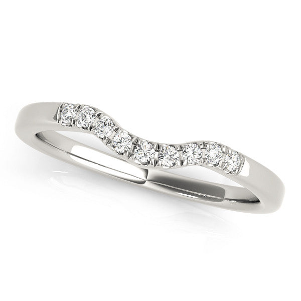 Silver Round Diamond Curved Pavé Wedding Band with U-Prong Setting