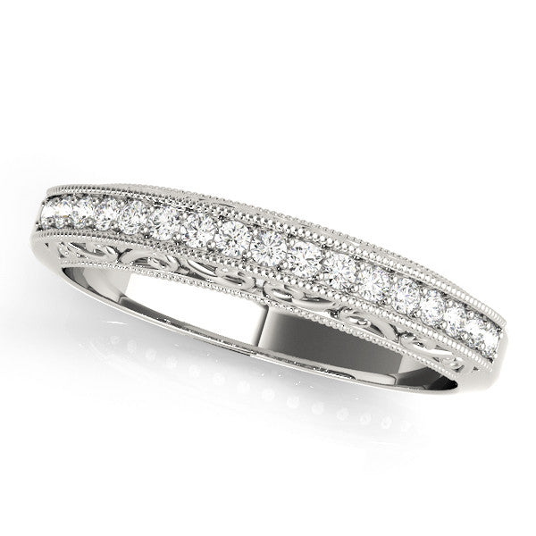 White gold Round Diamond Pavé Milgrain White Gold Eternity Band