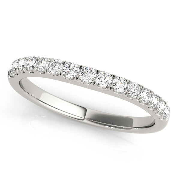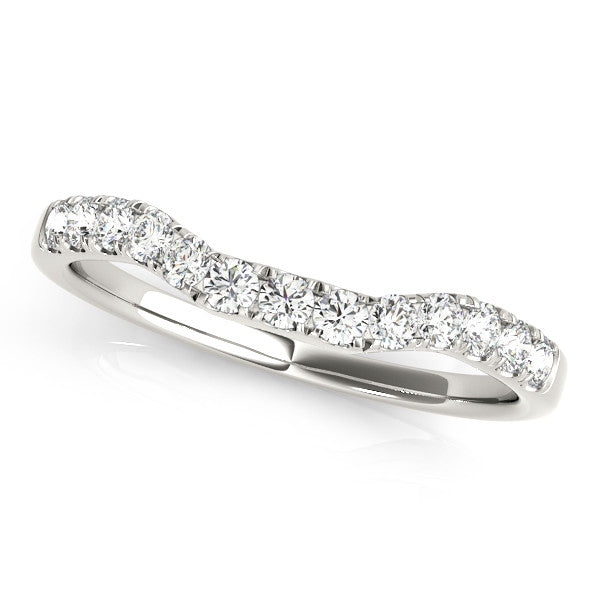 White gold Round Diamond Curved Pavé Wedding Band with U-Prong Setting