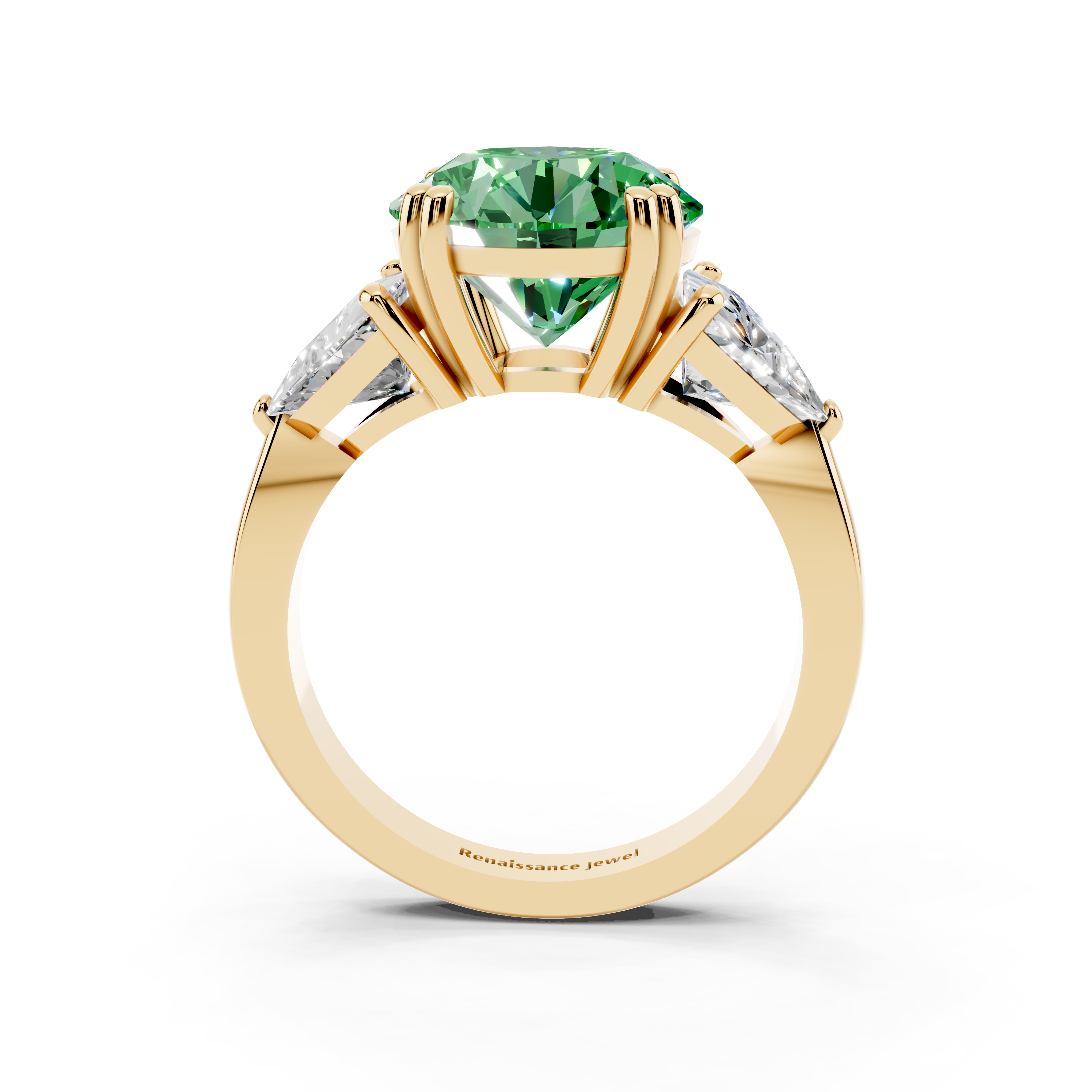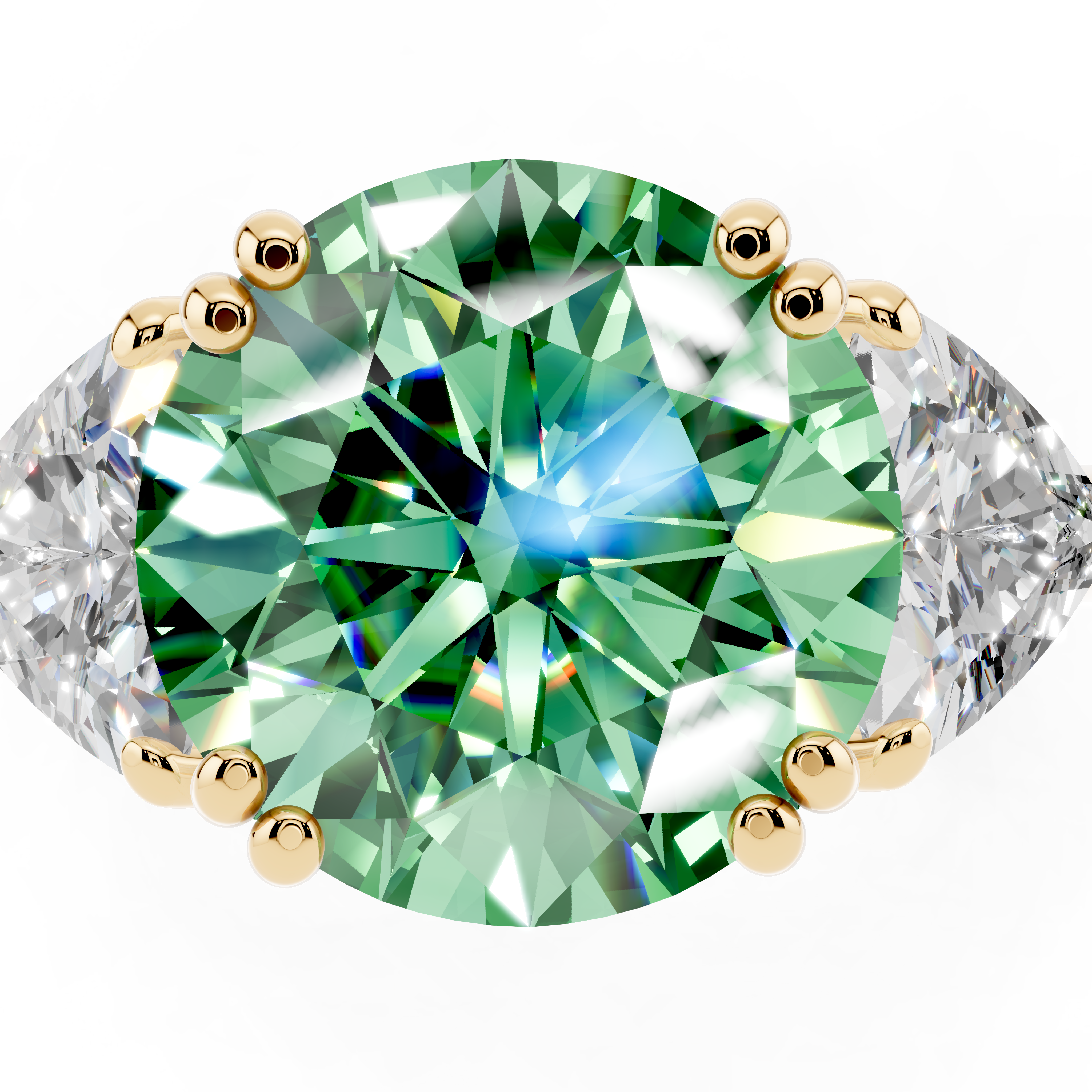 Yellow gold Fancy Green Round cut Brilliant and Trilliant Diamond Three-Stone Ring