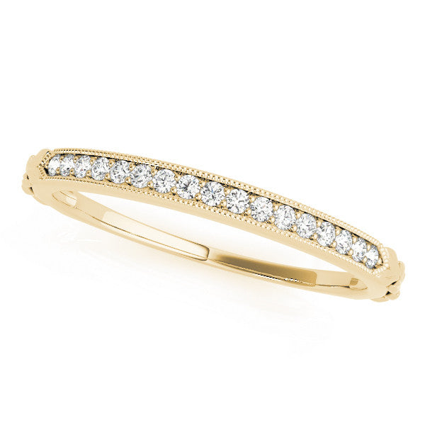 Yellow gold Round Cut Diamond Pavé Set Milgrain Edge Eternity Band