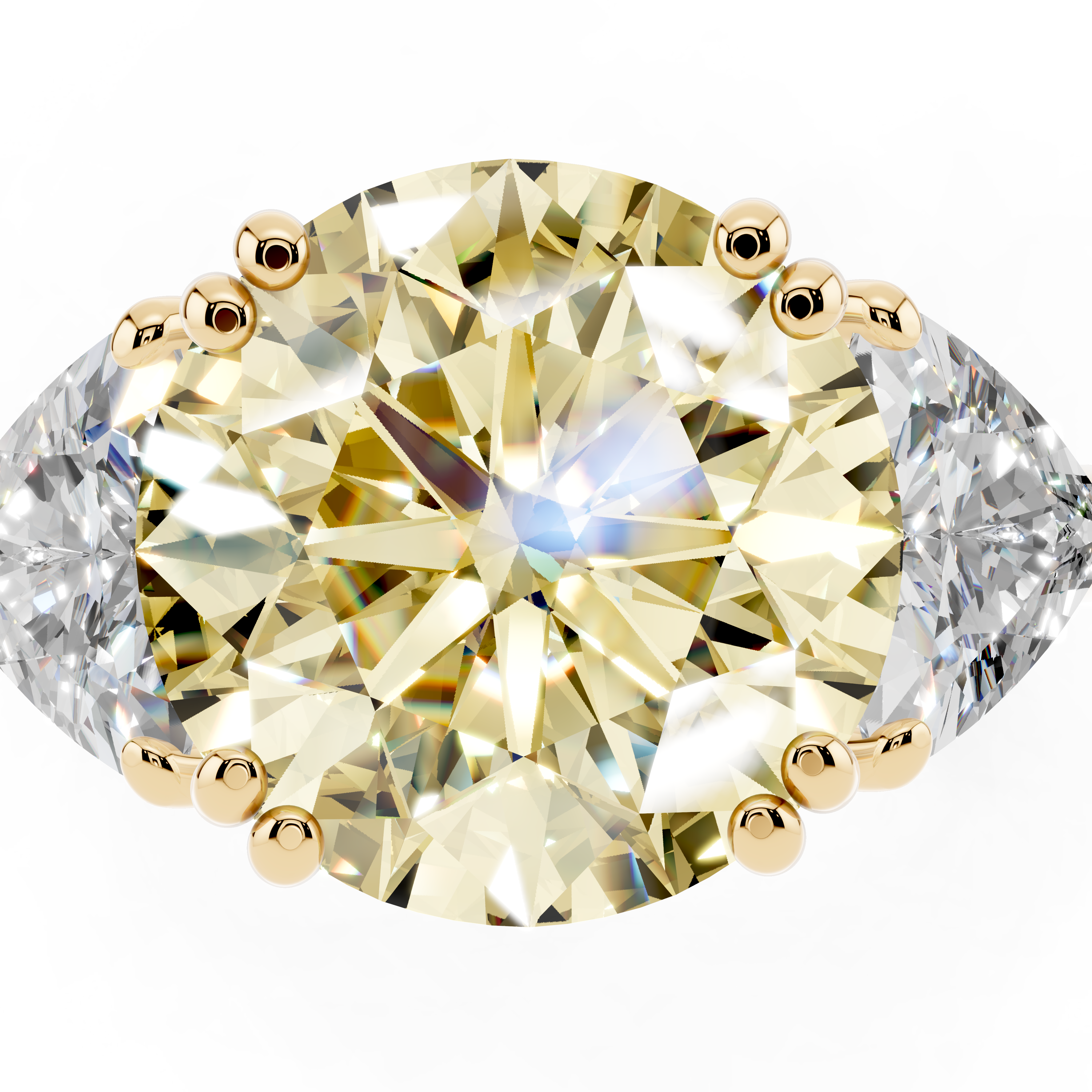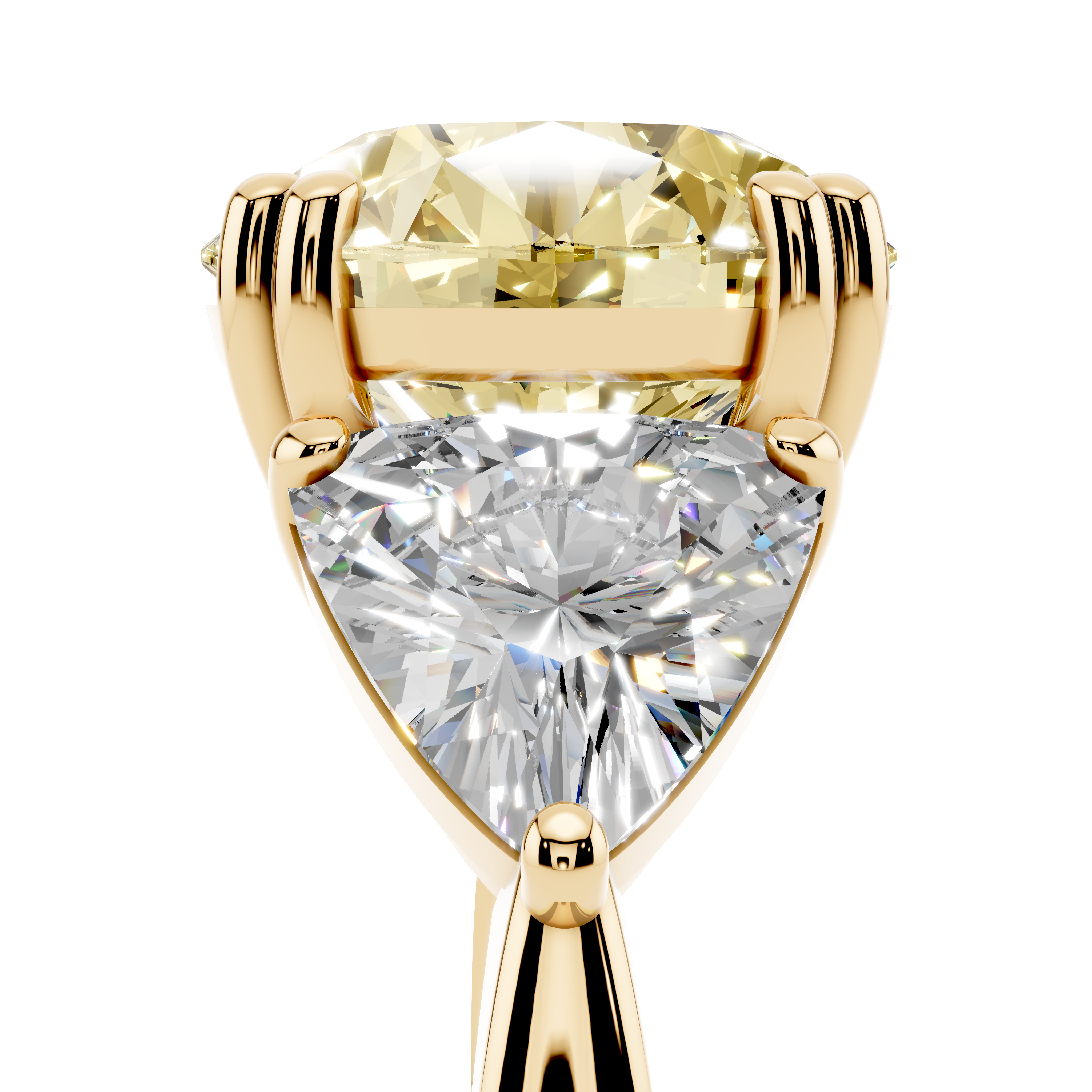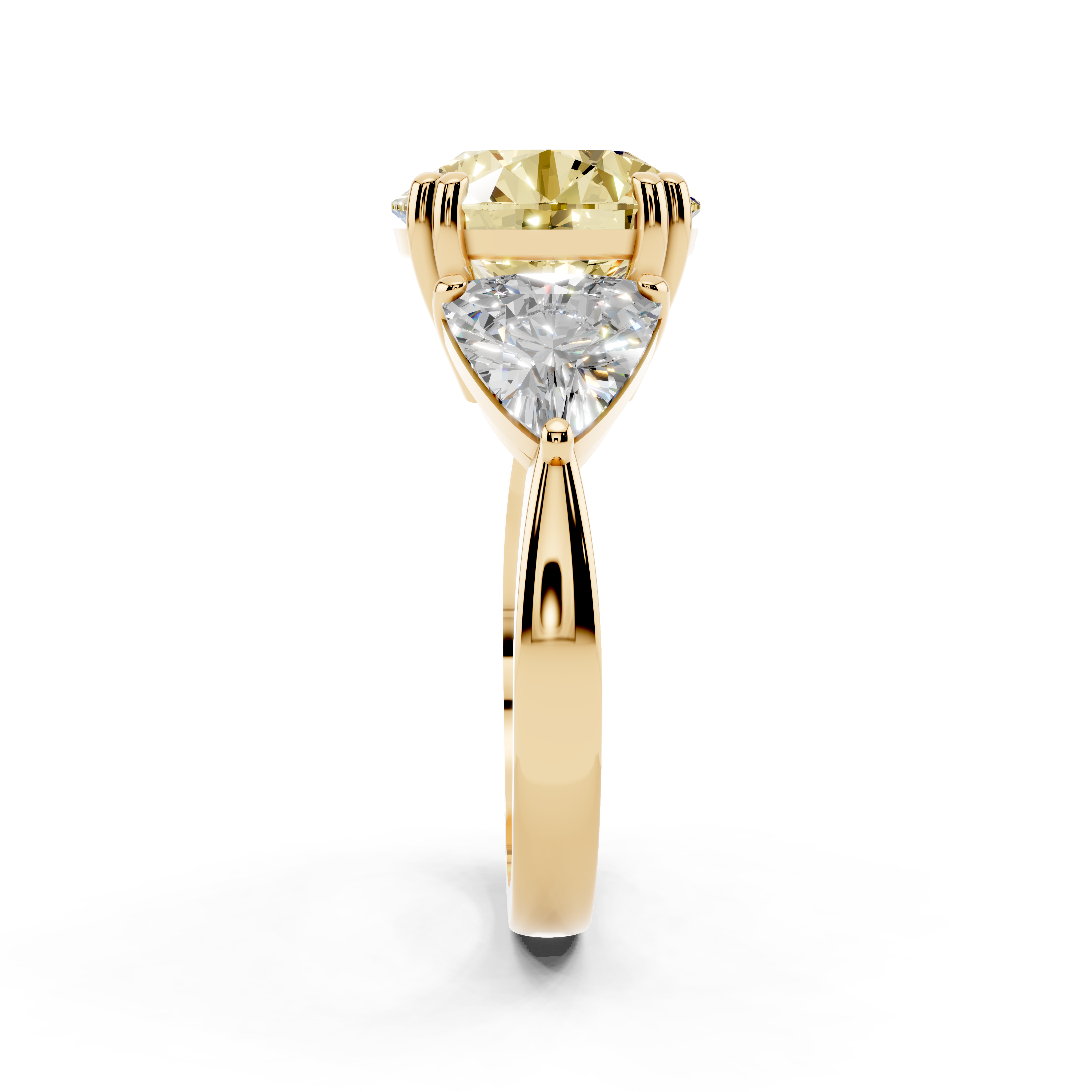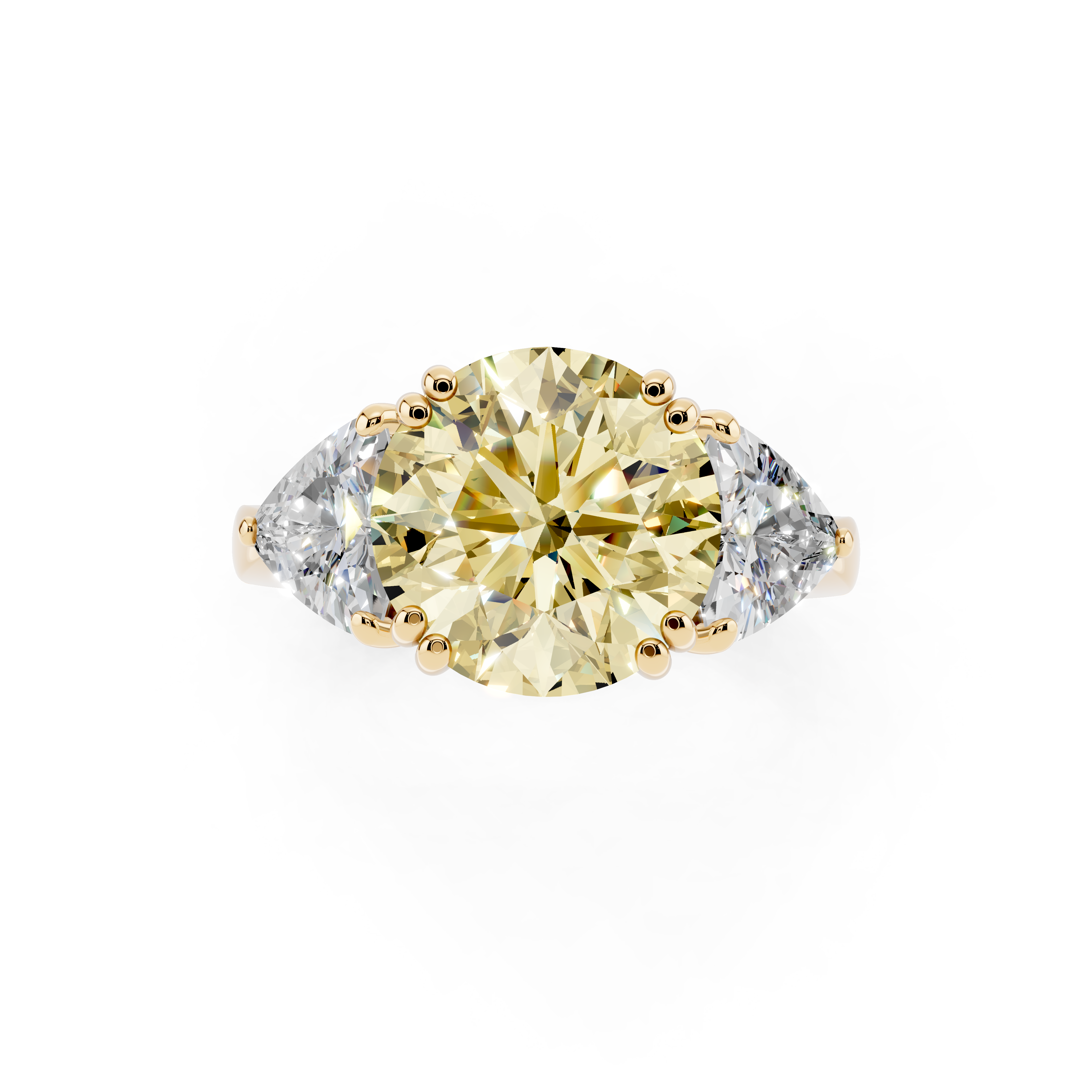 Yellow gold Fancy Yellow Round cut Brilliant and Trilliant Diamond Three-Stone Ring